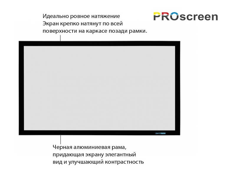 Натяжной экран на фиксированной раме PROscreen FСF9120 обладает идеально ровной поверхностью, обеспечивающей идеальное качество картинки.