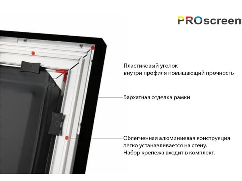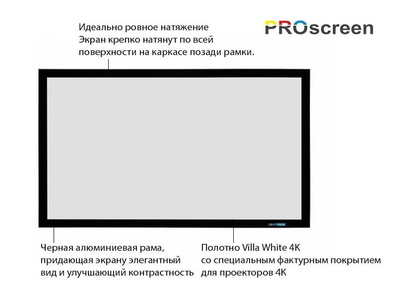 Натяжной экран на фиксированной раме PROscreen FСF9135 обладает идеально ровной поверхностью, обеспечивающей идеальное качество картинки.