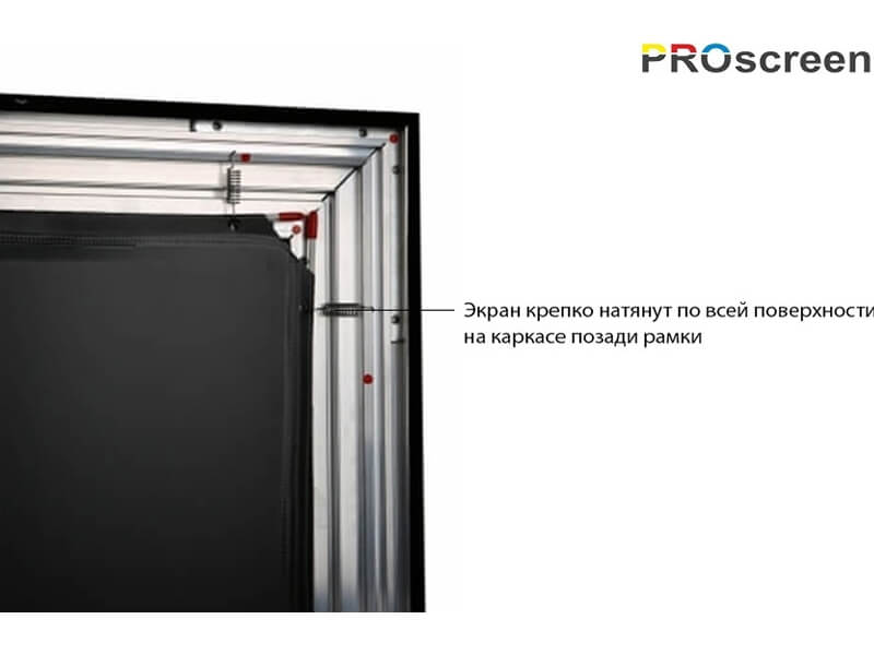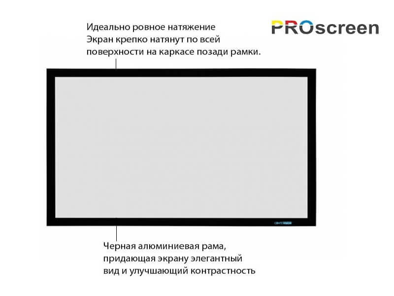Натяжной экран на фиксированной раме PROscreen FСF9150 обладает идеально ровной поверхностью, обеспечивающей идеальное качество картинки.