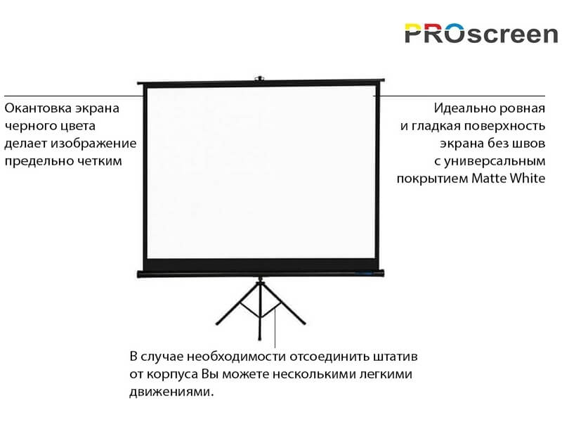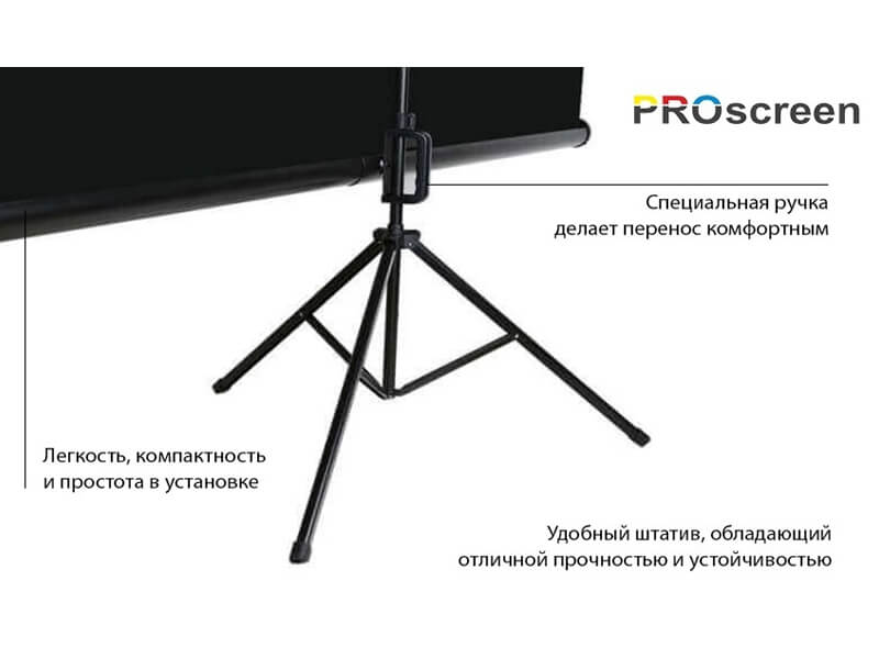 Легкость, компактность и простота в установке выгодно выделяют экран для проекторов PROscreen TLZ3120 среди конкурентов. Он позволяет полностью подготовиться к проведению презентации в течение нескольких минут, сделав её предельно информативной и наглядной.