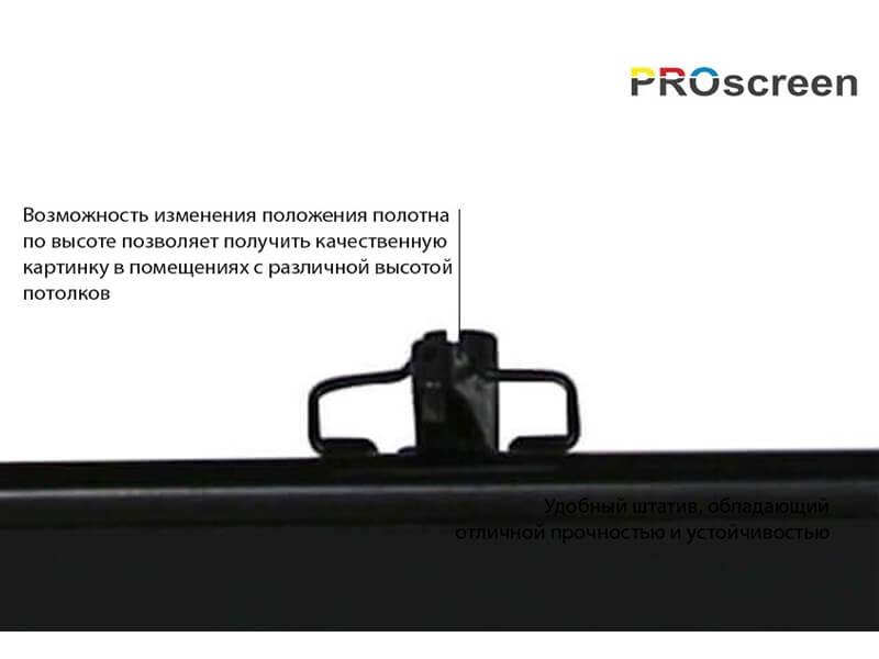 Возможность изменения положения полотна по высоте позволяет получить качественную картинку в помещениях с различной высотой потолков. Анти трапецеидальная штанга помогает установить оптимальный угол наклона полотна и избежать искажений картинки.