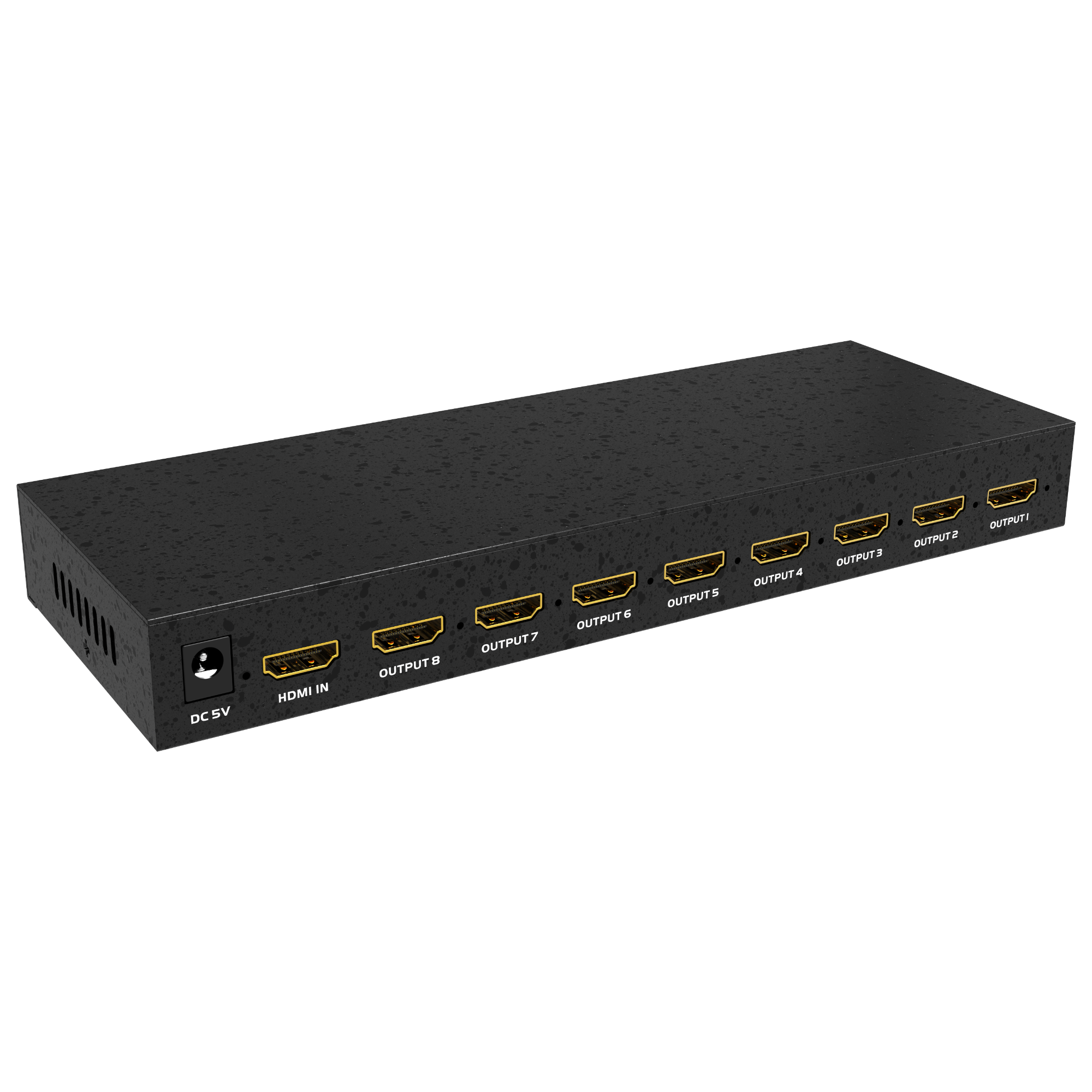 Этот мини-HDMI-разветвитель 1 в 8 выходов, поддерживает одновременную передачу сигнала к 8 устройствам отображения по HDMI, на телевизоры, мониторы и другие устройства отображения. 1 входной источник по HDMI.