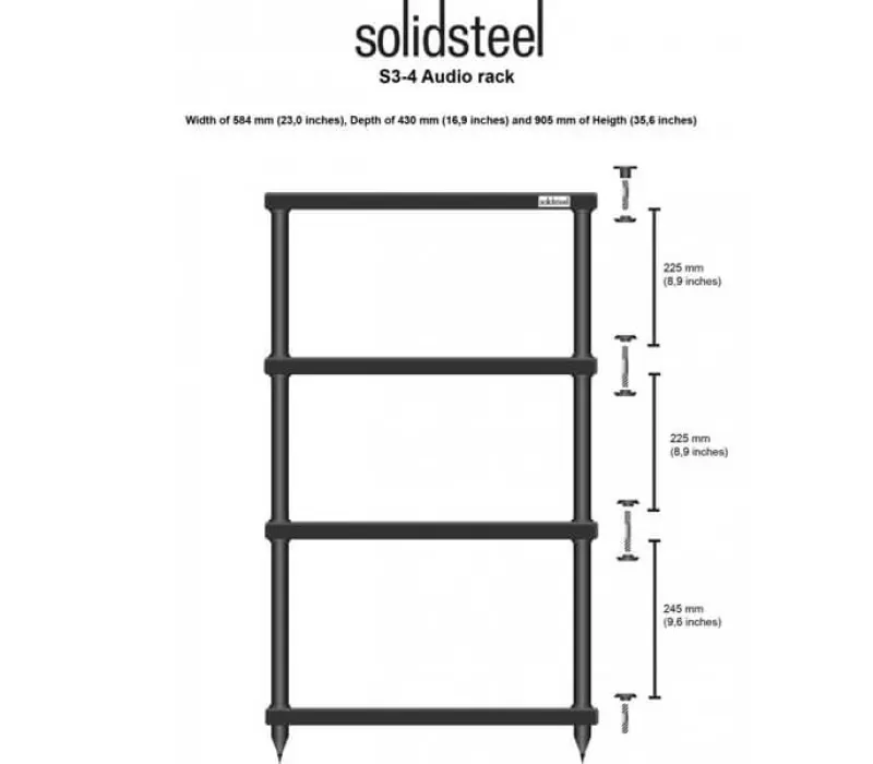 Серия S3 вдохновляет на десятилетия производственных результатов, достигнутых в исторической серии 3, 5 и 6. Технический опыт, накопленный в ходе исследования и разработки отдельных моделей, стал более чем двадцатью годами в истории бренда Solidsteel. Благодаря первостепенной важности, присущей исследованиям качества используемых материалов, все основные характеристики предыдущих технических продуктов, выполненные сваркой, сливаются с техническими свойствами, разработанными на протяжении многих лет от линии Hyperspike, и обеспечивают жизнь целому ряду оборудования в основном характеризуется превосходством, качеством и простотой его компонентов. Утончённый и неповторимый стиль предыдущей серии безошибочно присутствует в новой серии S3, которая всегда является результатом страсти к прослушиванию, для любителей музыки и, прежде всего, для музыки.