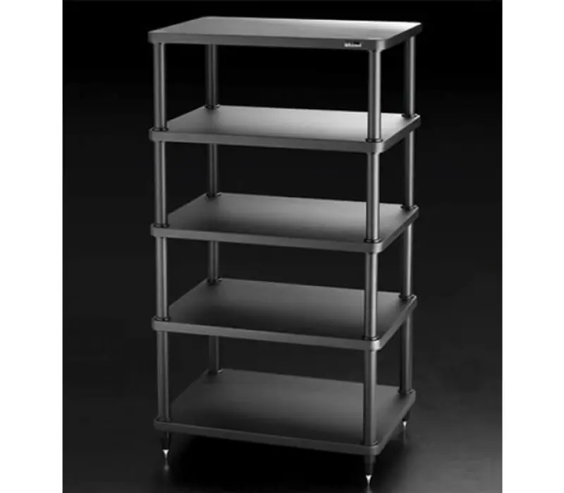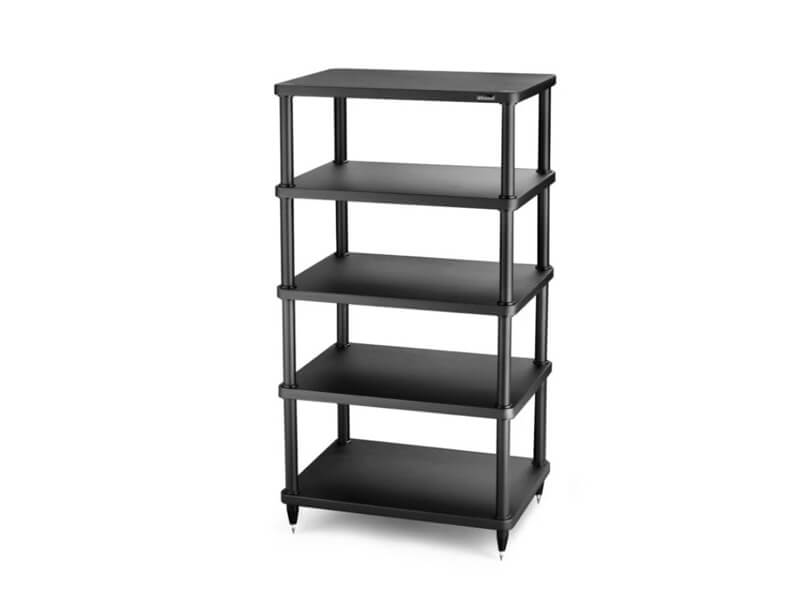 Solidsteel S3-4 выполнен из трубчатого алюминия со специальным наполнителем. Высота стойки равна 1010 мм с учетом антирезонансных опор, а расстояние между полками равно 205 мм. Полки в отличие от каркаса изготовлены из МДФ, а их толщина составляет 30 мм, что позволит им выдерживать значительный вес, а внутренние размеры полки равны 500 х 430 мм.