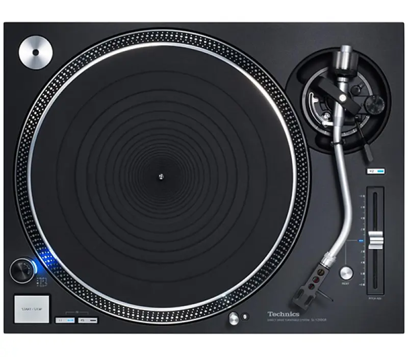 Тонарм отслеживает вращение пластинки и позволяет считывать сигнал с высокой точностью. В проигрывателе используется фирменный статически сбалансированный S-образный тонарм Technics из алюминиевой трубы, отличающийся малой массой и прочностью.Как и в модели SL-1200G, тонарм размещается на карданной подвеске и прецизионных подшипниках в специально вырезанных для них обоймах. Ручная сборка и регулирование высококлассными японскими мастерами позволяют добиться чувствительности при начале движения на уровне 5 мг и менее, что позволяет тонарму идеально следовать всем изгибам дорожки на пластинке.Кроме того, в комплект включён один дополнительный груз, что позволяет заменять звукосниматель на иной, более соответствующий жанру прослушиваемой музыки. (Масса звукоснимателя при использовании включённого в комплект дополнительного груза: 10—16,4 г (без головки звукоснимателя, также включённой в комплект))