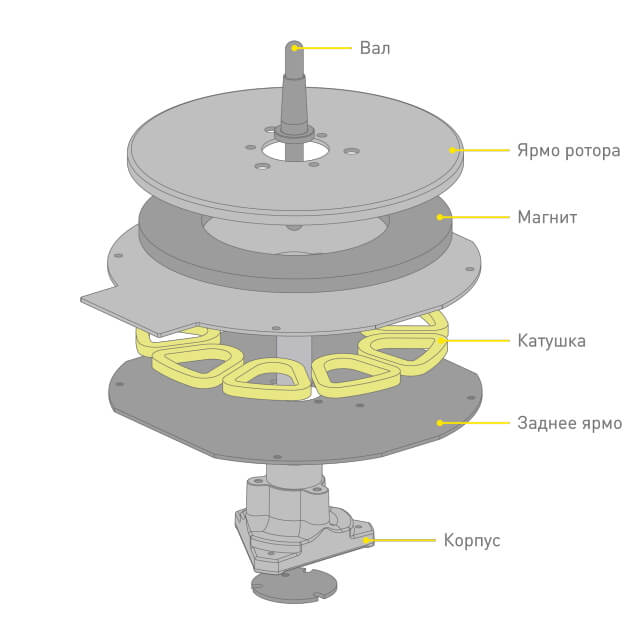Прямой привод без сердечника обеспечивает стабильность вращения