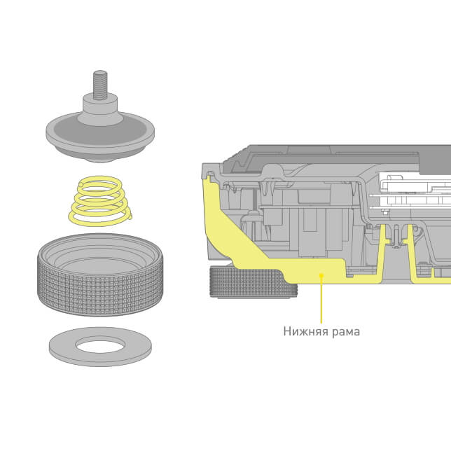 - Прочный корпус и виброустойчивый амортизатор