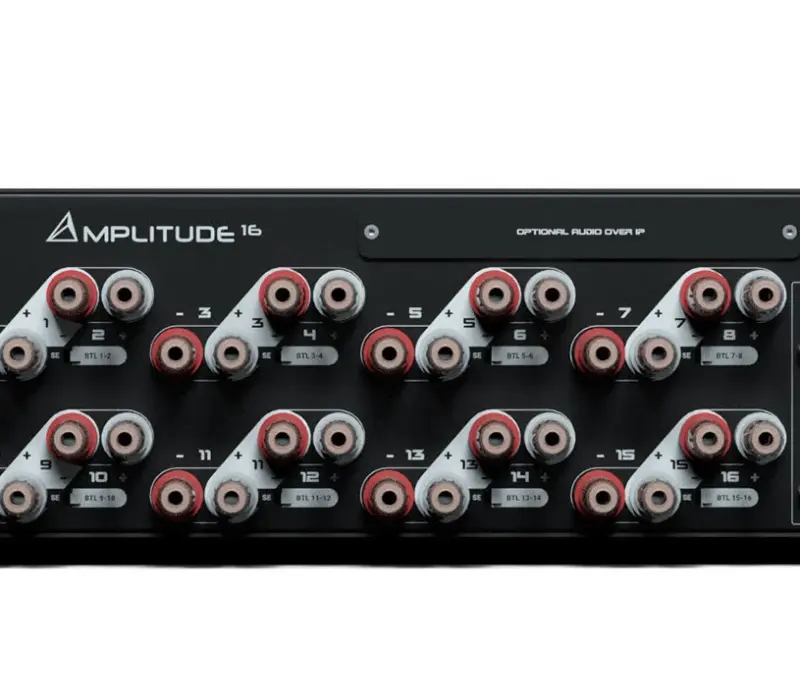 Чувствительность входа Amplitude16 оптимизирована с учетом характеристик аудио-видео процессоров серии Trinnov Altitude, что позволило дополнительно улучшить соотношение сигнал/шум и динамический диапазон системы с 6 до 8 дБ. Триггерные входы и выходы предназначены для включения усилителя и последовательного подключения других усилителей в систему.