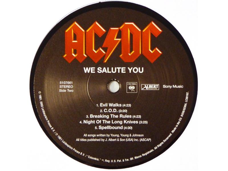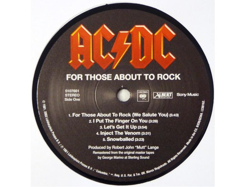 A1 For Those About To Rock (We Salute You) 5:43A2 I Put The Finger On You 3:26A3 Let's Get It Up 3:54A4 Inject The Venom 3:31A5 Snowballed 3:23B1 Evil Walks 4:23B2 C.O.D. 3:20B3 Breaking The Rules 4:23B4 Night Of The Long Knives 3:25B5 Spellbound 4:30