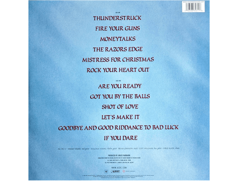 A1 ThunderstruckA2 Fire Your GunsA3 MoneytalksA4 The Razors EdgeA5 Mistress For ChristmasA6 Rock Your Heart OutB1 Are You ReadyB2 Got You By The BallsB3 Shot Of LoveB4 Let's Make ItB5 Goodbye And Good Riddance To Bad LuckB6 If You Dare