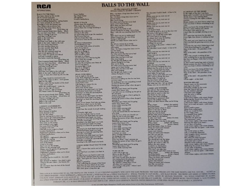 A1 Balls To The Wall 5:50A2 London Leatherboys 3:57A3 Fight It Back 3:30A4 Head Over Heels 4:19A5 Losing More Than You've Ever Had 5:04B1 Love Child 3:35B2 Turn Me On 5:12B3 Losers And Winners 4:19B4 Guardian Of The Night 4:25B5 Winterdreams 4:45