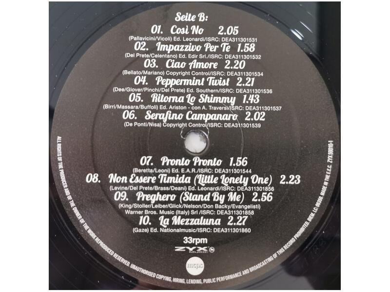 A1 Buonasera Signorina 2:44A2 Non Esiste L'amor 2:12A3 Blue Jeans Rock 2:22A4 Si E' Spento Il Sole 2:51A5 La Gatta Che Scotta 2:12A6 Teddy Girl 2:16A7 Piccola 1:36A8 Ventiquattromila Baci 2:15A9 La Mezza Luna 2:28A10 Personality 2:36B1 Cosi No 2:05B2 Impazzivo Per Te 1:58B3 Ciao Amore 2:20B4 Peppermint Twist 2:21B5 Ritorna Lo Shimmy 1:43B6 Serafino Campanaro 2:02B7 Pronto Pronto 1:56B8 Non Essere Timida (Little Lonely One) 2:23B9 Preghero (Stand By Me) 2:56B10 La Mezzaluna 2:27