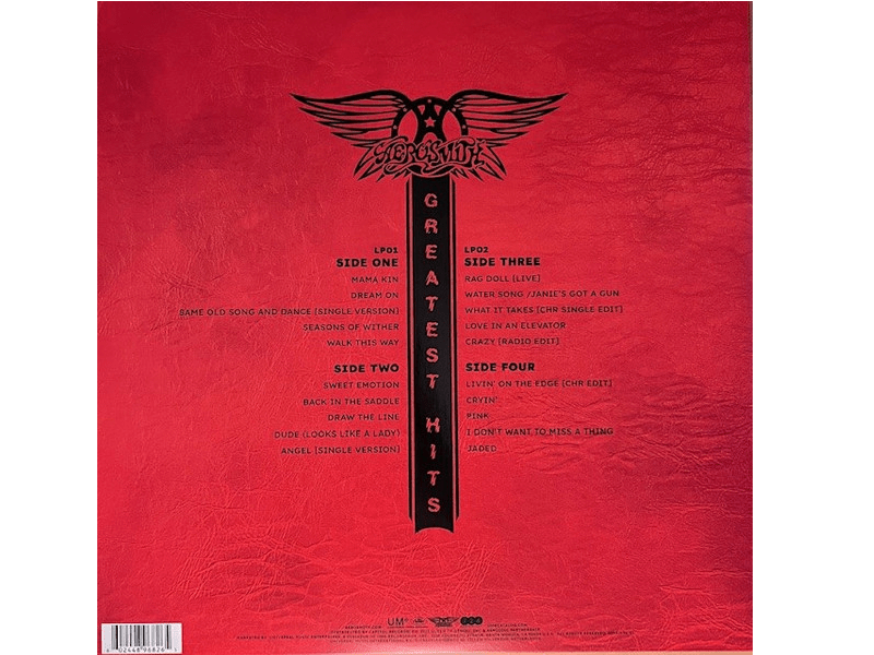 A1 Mama KinA2 Dream OnA3 Same Old Song And Dance [Single Version]A4 Seasons Of WitherA5 Walk This WayB1 Sweet EmotionB2 Back In The SaddleB3 Draw The LineB4 Dude (Looks Like A Lady)B5 Angel [Single Version]C1 Rag Doll [Live]C2 Water Song / Janie's Got A GunC3 What It Takes [CHR Single Edit]C4 Love In An ElevatorC5 Crazy [Radio Edit]D1 Livin' On The Edge [CHR Edit]D2 Cryin'D3 PinkD4 I Don't Want To Miss A ThingD5 Jaded