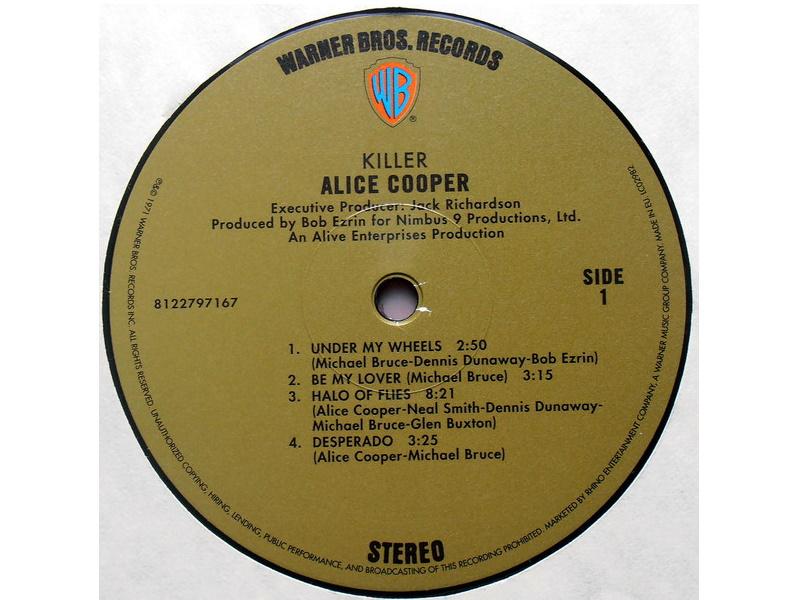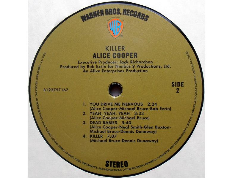 A1 Under My WheelsWritten-By – Bob Ezrin, Dennis Dunaway, Michael Bruce2:50A2 Be My LoverWritten-By – Michael Bruce3:15A3 Halo Of FliesWritten-By – Alice Cooper (2), Dennis Dunaway, Glen Buxton, Michael Bruce, Neal Smith8:21A4 DesperadoWritten-By – Alice Cooper (2), Michael Bruce3:25B1 You Drive Me NervousWritten-By – Alice Cooper (2), Bob Ezrin, Michael Bruce2:24B2 Yeah, Yeah, YeahWritten-By – Alice Cooper (2), Michael Bruce3:33B3 Dead BabiesWritten-By – Alice Cooper (2), Dennis Dunaway, Glen Buxton, Michael Bruce, Neal Smith5:40B4 KillerWritten-By – Dennis Dunaway, Michael Bruce7:07