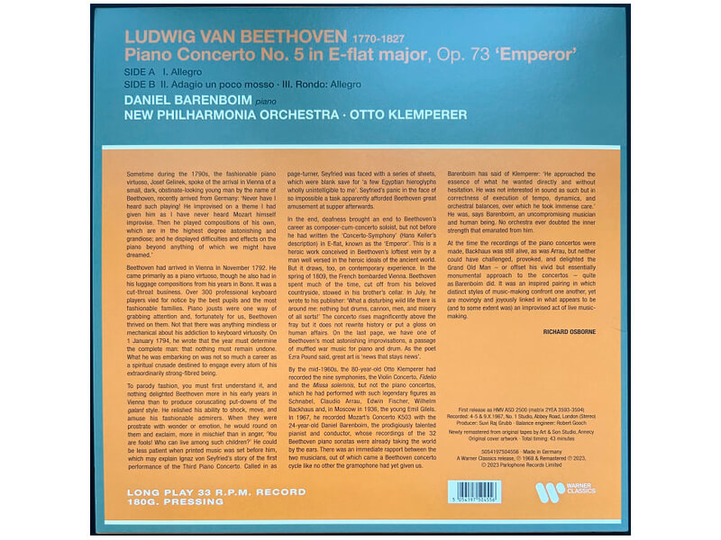 Виниловая пластинка Barenboim Daniel - Klemperer Otto - Beethoven - Emperor Concerto