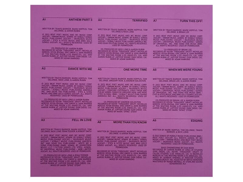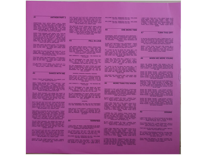 Список композиций:A1 Anthem Part 3 3:27A2 Dance With Me 3:08A3 Fell In Love 2:19A4 Terrified 2:48A5 One More Time 3:28A6 More Than You Know 3:37A7 Turn This Off! 0:24A8 When We Were Young 2:40A9 Edging 2:30B1 You Don't Know What You've Got 3:19B2 Blink Wave 3:08B3 Bad News 2:18B4 Hurt (Interlude) 1:23B5 Turpentine 3:05B6 F*ck Face 0:27B7 Other Side 2:10B8 Childhood 4:16