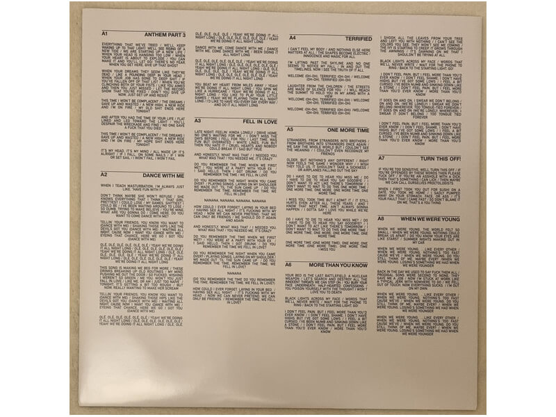 A8 When We Were YoungMixed By – Mark "Spike" Stent*Mixed By [Assisted By] – Matt WolachRecorded By – Aaron Rubin (2), Eric Emery, John Warren (4), Kevin Bivona, Kevin "Thrasher" Gruft*, Nicholas MorzovWritten-By – Aaron Rubin (2), Brian Lee (9), Mark Hoppus, Tom DeLonge, Travis Barker