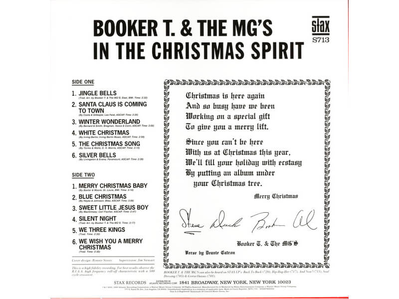 Список композиций:A1 Jingle Bells 2:32Arranged By – Booker T. & The MG's*Written-By – Trad.*