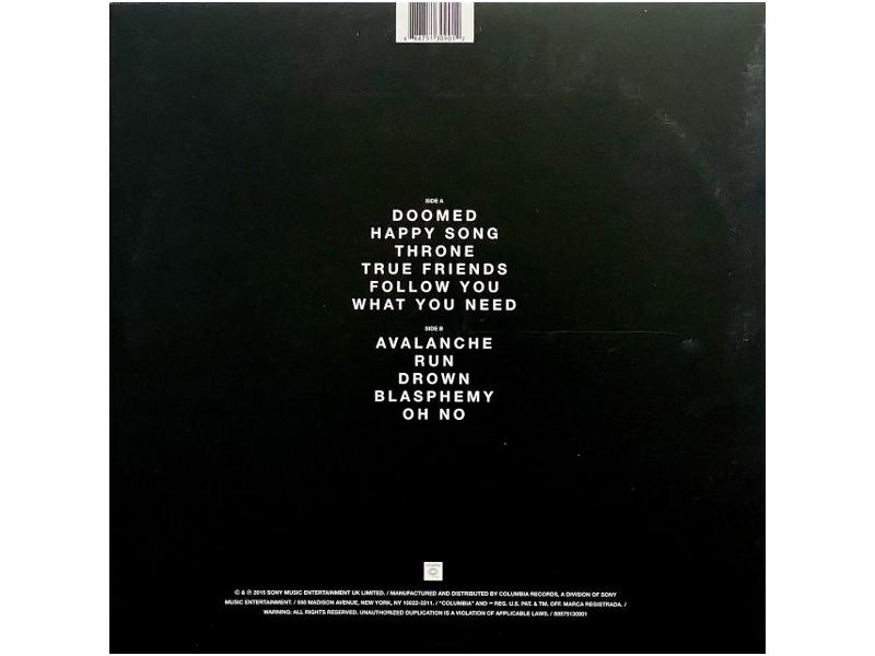 A1 Doomed 4:34A2 Happy Song 3:59A3 Throne 3:12A4 True Friends 3:52A5 Follow You 3:51A6 What You Need 4:12B1 Avalanche 4:22B2 Run 3:43B3 Drown 3:42B4 Blasphemy 4:35B5 Oh No 5:01CD1-1 Doomed 4:34CD1-2 Happy Song 3:59CD1-3 Throne 3:12CD1-4 True Friends 3:52CD1-5 Follow Me 3:51CD1-6 What You Need 4:12CD1-7 Avalance 4:22CD1-8 Run 3:43CD1-9 Drown 3:42CD1-10 Blasphemy 4:35CD1-11 Oh No 5:01
