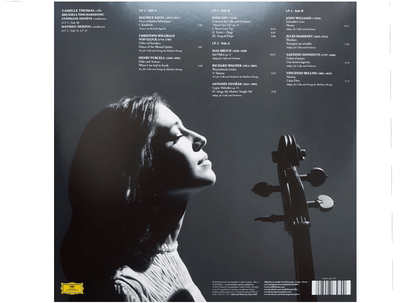 A1 I. KaddischA2 Dance Of The Blessed SpiritsA3 When I Am Laid In EarthB1 I. Never Give UpB2 II. Terror – ElegyB3 III. Song Of HopeC1 Kol Nidrei Op. 47 (Adagio For Cello And Orchestra)C2 V. TräumeC3 IV. Songs My Mother Taught Me (Adapt. For Cello And Orchestra)D1 Theme (Adapt. For Cello And Orchestra)D2 Pourquoi Me Réveiller (Adapt. For Cello And Orchestra)D3 Una Furtiva Lagrima (Adapt. For Cello And Orchestra)D4 Casta Diva