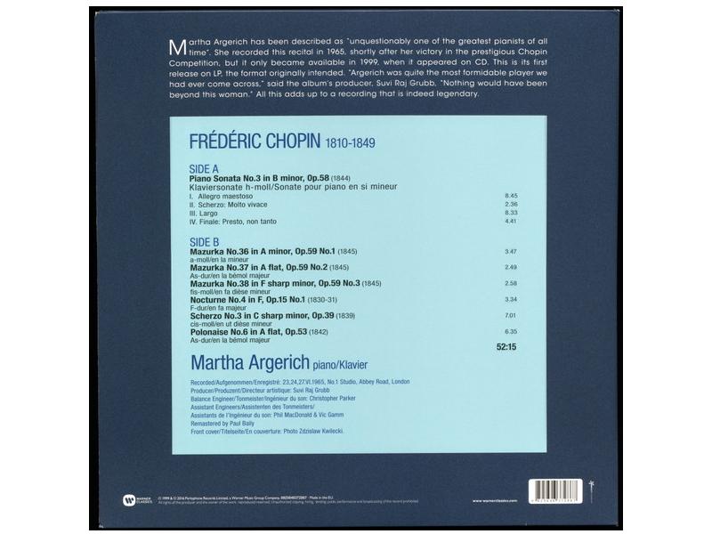 Виниловая пластинка Chopin, Martha Argerich – The Legendary 1965 Recording