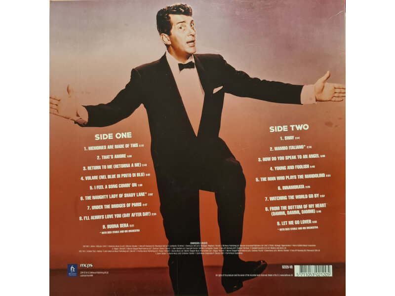 Список композиций:A1 Memories Are Made Of This 2:18A2 That's Amore 3:06A3 Return To Me (Retorna A Me) 2:43A4 Volare (Nel Blue Di Punto Di Blu) 3:02A5 I Feel A Song Comin' On 1:50A6 The Naughty Lady Of Shady LaneOrchestra – Dick Stabile And His Orchestra2:52A7 Under The Bridges Of Paris 2:47A8 I'll Always Love You (day After Day) 2:34A9 Buona Sera 2:21B1 Sway 2:41B2 Mambo ItalianoOrchestra – Dick Stabile And His Orchestra2:16B3 How Do You Speak To An Angel 3:08B4 Young And Foolish 2:46B5 The Man Who Plays The Mandolino 2:51B6 Innamorata 2:25B7 Watching The World Go By 2:07B8 From The Bottom Of My Heart (Dammi, Dammi, Dammi) 2:40B9 Let Me Go Lover 3:02