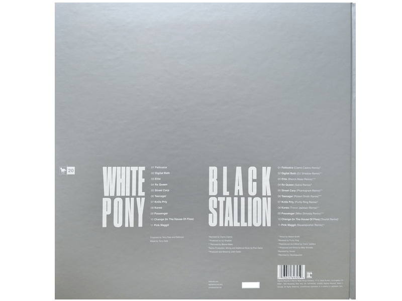 Black Stallion 2-1 Feiticeira (Clams Casino Remix)Remix – Clams Casino2-2 Digital Bath (DJ Shadow Remix)Remix – DJ Shadow2-3 Elite (Blanck Mass Remix)Remix – Blanck Mass2-4 Rx Queen (Salva Remix)Remix – Salva*2-5 Street Carp (Phantogram Remix)Remix – Phantogram2-6 Teenager (Robert Smith Remix)Remix – Robert Smith2-7 Knife Prty (Purity Ring Remix)Remix – Purity Ring2-8 Korea (Trevor Jackson Remix)Remix – Trevor Jackson2-9 Passenger (Mike Shinoda Remix)Remix – Mike Shinoda2-10 Change (In The House Of Flies) (Tourist Remix)Remix – Tourist (8)2-11 Pink Maggit (Squarepusher Remix)