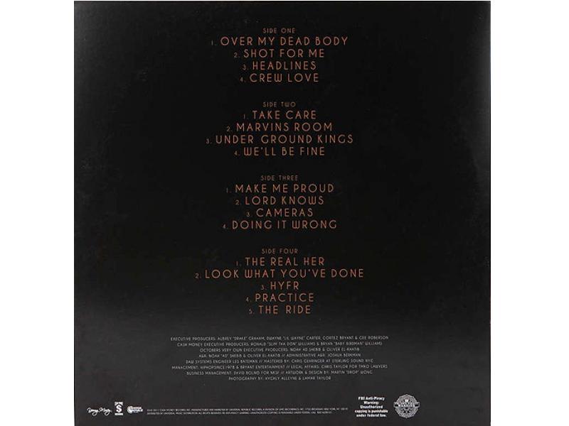 A1 Over My Dead BodyA2 Shot For MeA3 HeadlinesA4 Crew LoveB1 Take CareB2 Marvins Room / Buried Alive (Interlude)B3 Under Ground KingsB4 We'll Be FineC1 Make Me ProudC2 Lord KnowsC3 Cameras / Good Ones Go (Interlude)C4 Doing It WrongD1 The Real HerD2 Look What You've DoneD3 HYFR (Hell Ya Fucking Right)D4 PracticeD5 The Ride