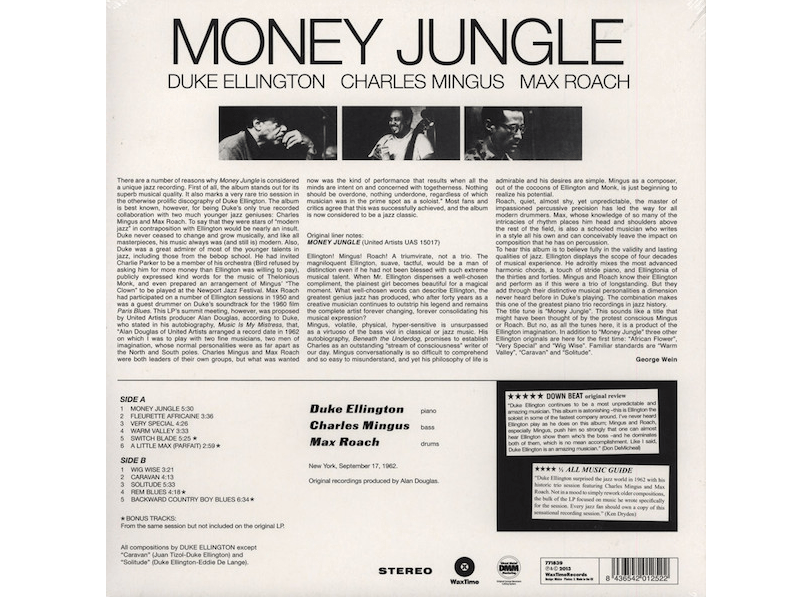 A1 Money Jungle 5:30A2 Fleurette Africaine 3:36A3 Very Special 4:26A4 Warm Valley 3:33A5 Switch Blade 5:25A6 A Little Max (Parfait) 2:59B1 Wig Wise 3:21B2 Caravan 4:13B3 Solitude 5:33B4 Rem Blues 4:18B5 Backward Country Boy Blues 6:34