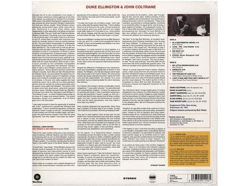 A1 In A Sentimental MoodWritten-By – Duke Ellington4:14A2 Take The ColtraneWritten-By – Duke Ellington4:42A3 Big NickWritten-By – John Coltrane4:27A4 StevieWritten-By – Duke Ellington4:22B1 My Little Brown BookWritten-By – Billy Strayhorn5:20B2 AngelicaWritten-By – Duke Ellington6:00B3 The Feeling Of JazzWritten-By – Bobby Troup, Duke Ellington, George Simon*5:32B4 I Got It Bad And That Ain't GoodWritten-By – Duke Ellington, Paul Francis Webster6:13