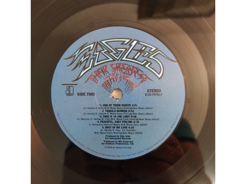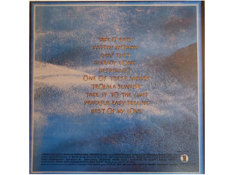 Their Greatest Hits 1971-1975A1 Take It Easy 3:29A2 Witchy Woman 4:10A3 Lyin' Eyes 6:21A4 Already Gone 4:13A5 Desperado 3:33B1 One Of These Nights 4:51B2 Tequila Sunrise 2:52B3 Take It To The Limit 4:48B4 Peaceful Easy Feeling 4:16B5 Best Of My Love 4:35