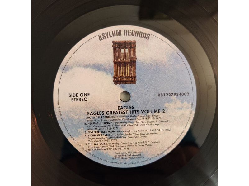 Eagles Greatest Hits Volume 2C1 Hotel California 6:29C2 Heartache Tonight 4:25C3 Seven Bridges Road 2:58C4 Victim Of Love 4:10C5 The Sad Cafe 5:32D1 Life In The Fast Lane 4:45D2 I Can't Tell You Why 4:54D3 New Kid In Town 5:04D4 The Long Run 3:42D5 After The Thrill Is Gone 4:41