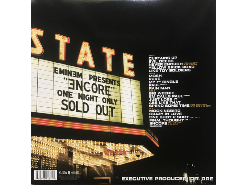 A2 Evil Deeds 4:19Engineer – Mauricio "Veto" Iragorri, Steve Baughman, Steve KingEngineer [Assistant] – Ben Jost, Michael Sroka*Engineer, Mixed By – Mike StrangeKeyboards – Mark Batson, Mike ElizondoKeyboards [Intro] – Luis RestoMixed By – EminemProducer – Dr. Dre