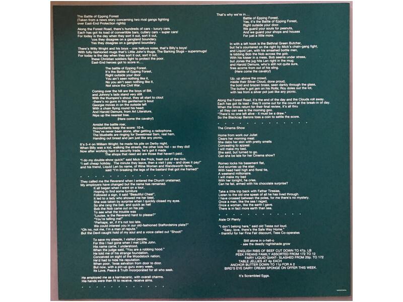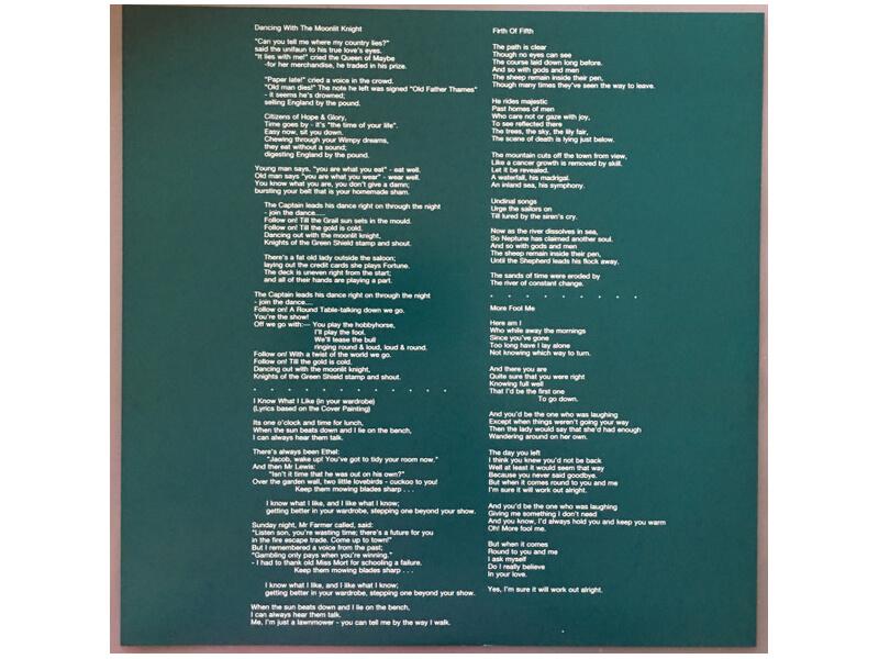 A1 Dancing With The Moonlit Knight 8:04A2 I Know What I Like (In Your Wardrobe) 4:10A3 Firth Of Fifth 9:40A4 More Fool Me 3:13B1 The Battle Of Epping Forest 11:43B2 After The Ordeal 4:15B3 The Cinema Show 10:41B4 Aisle Of Plenty 1:58