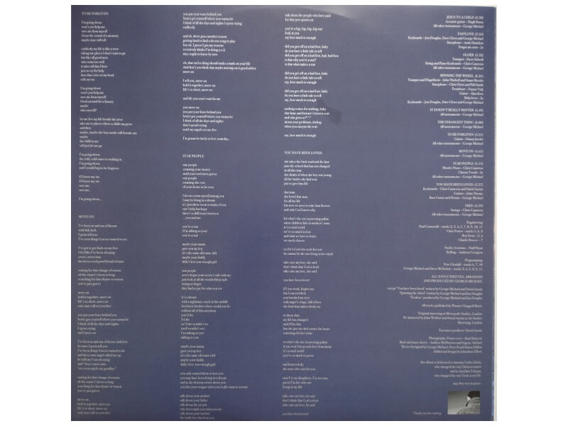 A2 Fastlove 5:24Engineer – Ren SwanKeyboards – Dave Clews, George Michael, Jon DouglasProducer – Jon DouglasSaxophone – Andrew Hamilton*