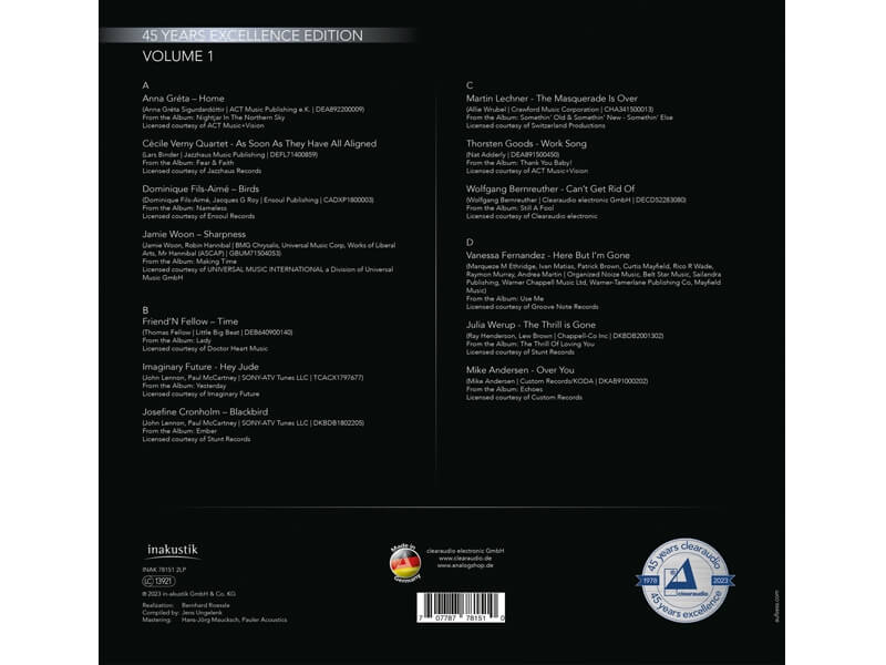 Виниловая пластинка Inakustik - Clearaudio - 45 Years Excellence Ed