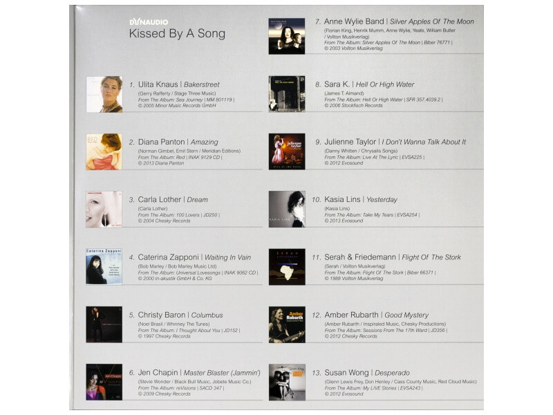 A1 Ulita Knaus– BakerstreetA2 Diana Panton– AmazingA3 Carla Lother– DreamB1 Caterina Zapponi– Waiting In VainB2 Christy Baron– ColumbusB3 Jen Chapin– Master Blaster (Jammin')C1 Anne Wylie Band– Silver Apples Of The MoonC2 Sara K.– Hell Or High WaterC3 Julienne Taylor– Don't Wanna Talk About ItD1 Kasia Lins– YesterdayD2 Serah & Friedemann– Flight Of The StorkD3 Amber Rubarth– Good MysteryD4 Susan Wong– Desperado