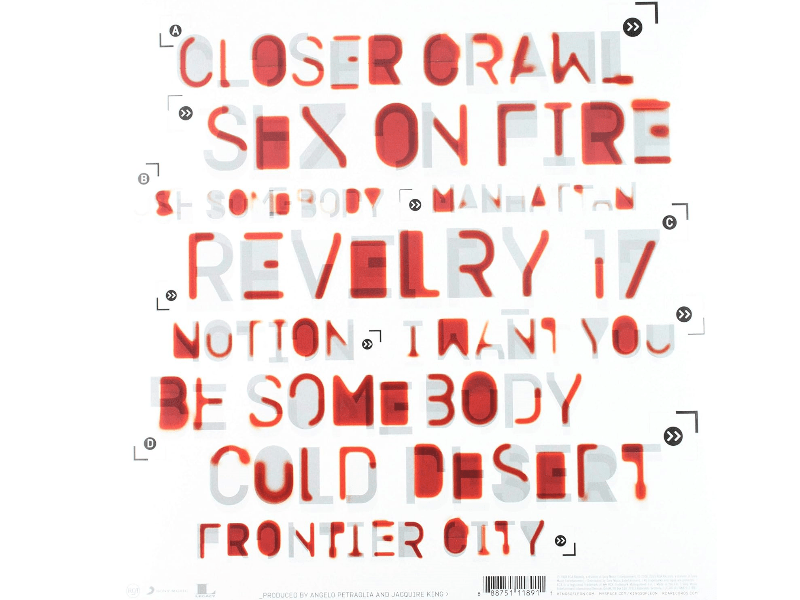 A1 Closer 3:57A2 Crawl 4:06A3 Sex On Fire 3:23B1 Use Somebody 3:51B2 Manhattan 3:24B3 Revelry 3:22C1 17 3:05C2 Notion 3:01C3 I Want You 5:07D1 Be Somebody 3:47D2 Cold Desert 5:35D3 Frontier City 3:39