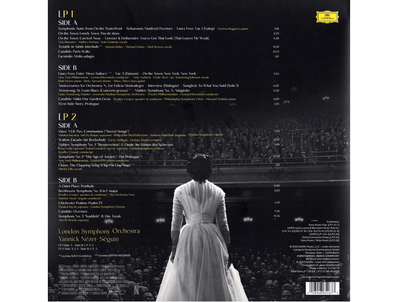 A1 Symphonic Suite From On The Waterfront - Schumann: Manfred Overture - Fancy Free: Var. IA2 On The Town: Lonely Town. Pas De DeuxA3 On The Town: Carried Away - Loser & Hollander: You've Got That LookA4 Trouble In Tahiti: InterludeA5 Candide: Paris WaltzA6 Facsimile: Molto AdagioB1 Fancy Free: Enter Three Sailors / Var.3 - On The Town: New York, New YorkB2 Anniversaries For Orchestra: X. For Felicia Montealegre - Interview - Songfest: To What You SaidB3 Armstrong: St. Louis Blues (Concerto Grosso) - Mahler: Symphony No. 5: AdagiettoB4 Candide: Make Our Garden GrowB5 West Side Story: PrologueC1 Mass: XVII. Pax: CommunionC2 Walton: Façade: Sir BeelzebubC3 Mahler: Symphony No. 2 "Resurrection": V. Finale. Im Tempo Des ScherzosC4 Symphony No.2 "The Age Of Anxiety": The PrologueC5 Chase: The Clapping SongD1 A Quiet Place: PostludeD2 Beethoven: Symphony No. 8 In F MajorD3 Chichester Psalms: Psalm 23D4 Candide: OvertureD5 Symphony No. 3 "Kaddish": II. Din-Torah
