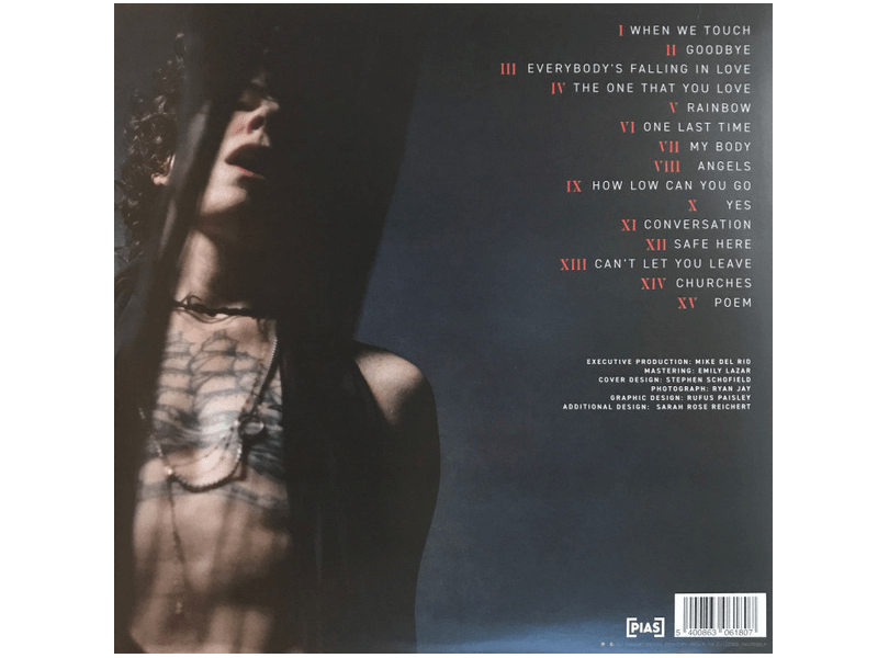 A1 When We Touch 2:52A2 Goodbye 3:46A3 Everybody's Falling In Love 3:55A4 The One That You Love 3:43A5 Rainbow 3:52B1 One Last Time 3:13B2 My Body 4:02B3 Angels 3:39B4 How Low Can You Go 3:23B5 Yes 3:07C1 Conversation 4:46C2 Safe Here 3:42C3 Can't Let You Leave 4:20C4 Churches 3:13D Poem 1:18