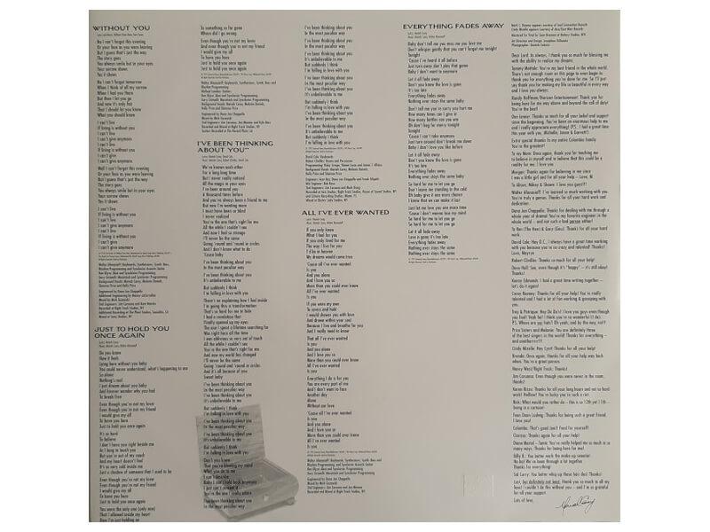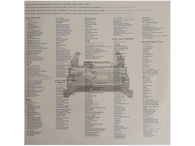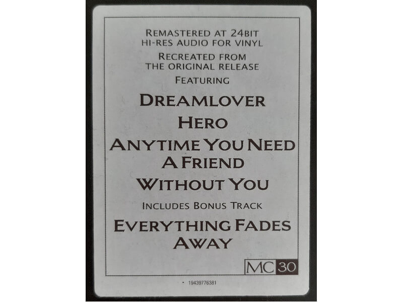 A1 Dreamlover 3:53A2 Hero 4:19A3 Anytime You Need A Friend 4:26A4 Music Box 4:57A5 Now That I Know 4:19B1 Never Forget You 3:46B2 Without You 3:36B3 Just To Hold You Once Again 3:59B4 I've Been Thinking About You 4:48B5 All I've Ever Wanted 3:52B6 Everything Fades Away 5:27