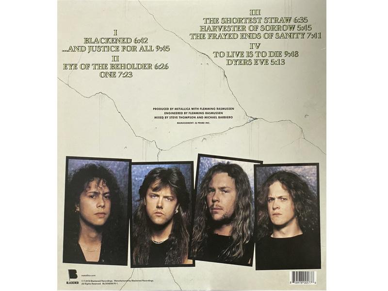A1 BlackenedWritten-By – Hetfield*, Newsted*, Ulrich*6:42A2 ...And Justice For AllWritten-By – Hetfield*, Hammett*, Ulrich*9:45B1 Eye Of The BeholderWritten-By – Hetfield*, Hammett*, Ulrich*6:26B2 OneWritten-By – Hetfield*, Ulrich*7:23C1 The Shortest StrawWritten-By – Hetfield*, Ulrich*6:35C2 Harvester Of SorrowWritten-By – Hetfield*, Ulrich*5:45C3 The Frayed Ends Of SanityWritten-By – Hetfield*, Hammett*, Ulrich*7:41D1 To Live Is To DieSoloist, Lead Guitar [2nd Solo] – Hetfield*Written-By – Burton*, Hetfield*, Ulrich*9:48D2 Dyers EveWritten-By – Hetfield*, Hammett*, Ulrich*5:13