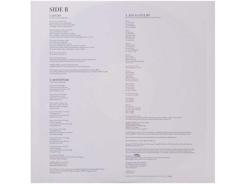 Список композиций:A1 My Heart Is Full 3:06Keyboards, Piano, Synthesizer [OP-1] – Thomas BartlettMixed By – Patrick DillettProducer [Produced By] – Thomas BartlettRecorded By – Thomas BartlettWritten-By – Norah Jones, Thomas Bartlett