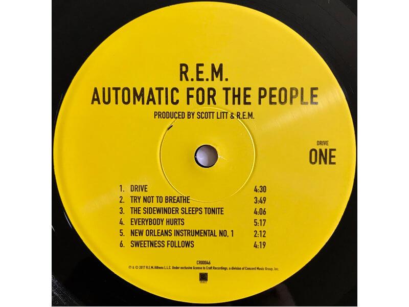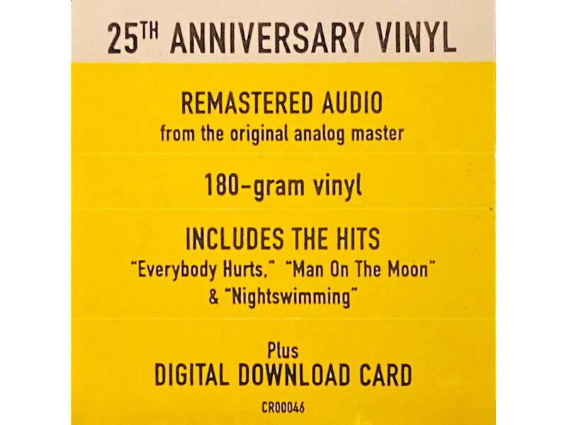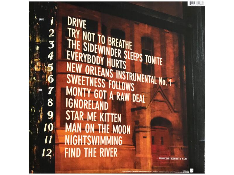 DriveA1 Drive 4:30A2 Try Not To Breathe 3:49A3 The Sidewinder Sleeps Tonite 4:06A4 Everybody Hurts 5:17A5 New Orleans Instrumental No. 1 2:12A6 Sweetness Follows 4:19RideB1 Monty Got A Raw Deal 3:16B2 Ignoreland 4:24B3 Star Me Kitten 3:15B4 Man On The Moon 5:12B5 Nightswimming 4:16B6 Find The River 3:49