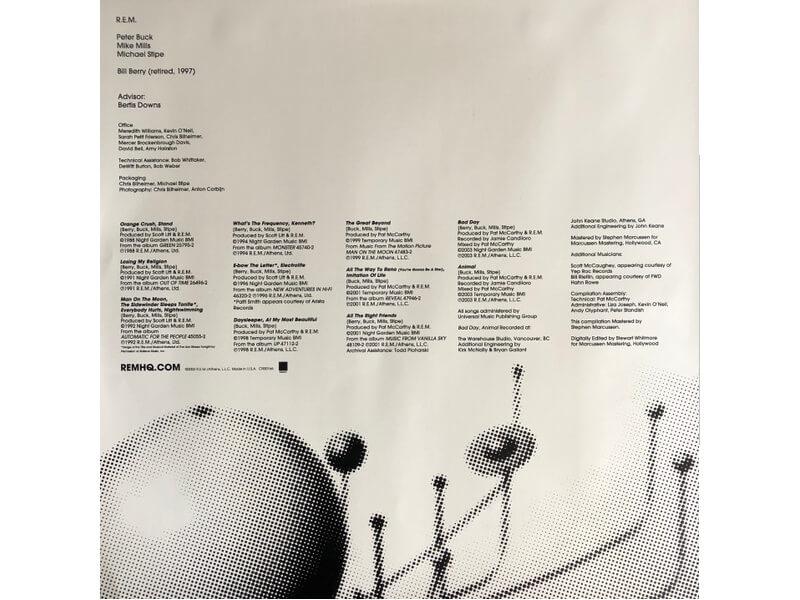 A1 Man On The MoonA2 The Great BeyondA3 Bad DayA4 What's The Frequency, Kenneth?B1 All The Way To RenoB2 Losing My ReligionB3 E-Bow The LetterBacking Vocals – Patti SmithB4 Orange CrushB5 Imitation Of LifeC1 DaysleeperC2 AnimalC3 The Sidewinder Sleeps ToniteC4 StandC5 ElectroliteD1 All The Right FriendsD2 Everybody HurtsD3 At My Most BeautifulD4 Nightswimming