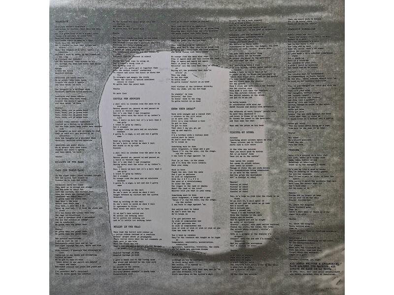 A1 Bombtrack 4:04A2 Killing In The Name 5:13A3 Take The Power Back 5:36A4 Settle For Nothing 4:47A5 Bullet In The Head 4:46B1 Know Your Enemy 4:54Vocals [Additional] – Maynard James KeenanB2 Wake Up 6:04B3 Fistful Of Steel 5:30B4Township Rebellion 5:24B5 Freedom 6:06