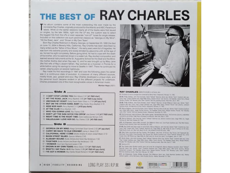 Список композиций:A1 I Can't Stop Loving You 2:41A2 Hit The Road, Jack 2:05A3 Unchain My Heart 2:54A4 But On The Other Hand, Baby 3:18A5 Hide Nor Hair 3:13A6 At The Club 3:01A7 Who You Gonna Love 2:06A8 Don't Let The Sun Catch You Cryin' 3:49A9 Night Time Is The Right Time 3:24A10 Hallelujah I Love Her So 2:38B1 Georgia On My Mind 3:42B2 Carry Me Back To Old Virginny 2:05B3 California, Here I Come 2:10B4 Basin Street Blues 2:45B5 Alabamy Bound 1:53B6 Together 1:35B7 I Wonder 2:38B8 Drown In My Own Tears 3:24B9 What'd I Say Parts I & II 5:06B10 I've Got A Woman 2:56
