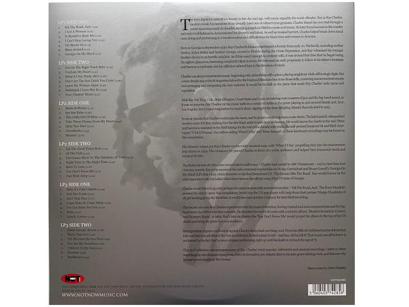 A1 Hit The Road, Jack 1:59A2 I Got A Woman 2:51A3 It Should've Been Me 2:42A4 I Can't Stop Loving You 2:35A5 I'm Movin On 2:13A6 Mess Around 2:41A7 Georgia On My Mind 3:37B1 Get On The Right Track Baby 2:22B2 Unchain My Heart 2:52B3 What'd I Say (Parts 1&2) 5:06B4 Don't Let The Sun Catch You Cryin' 3:46B5 Leave My Woman Alone 2:42B6 Hallelujah I Love Her so 2:33B7 Your Cheatin' Heart 3:31C1 Sticks & Stones 2:12C2 See See Rider 2:36C3 This Little Girl Of Mine 2:29C4 Take These Chains From My Heart 2:54C5 Hide 'Nor Hair 3:07C6 Greenbacks 2:52C7 Moanin' 3:16D1 Let The Good Times Roll 2:25D2 At The Club 3:01D3 I'm Gonna Move To The Outskirts Of Town 3:41D4 Night Time Is The Right Time 3:25D5 Born To Lose 3:19D6 You Don't Know Me 3:15D7 One Mint Julep 3:04E1 Baby It's Cold Outside 4:09E2 Tell The Truth 3:05E3 Ain't That Fine 2:17E4 Come Rain Or Come Shine 3:45E5 I've Got News For You 4:29E6 Ruby 3:52E7 Lonely Avenue 2:33F1 Sweet Georgia Brown 2:28F2 Them That Got 2:48F3 Tell Me How Do You Feel 2:39F4 You Are My Sunshine 2:58F5 I Believe To My Soul 3:01F6 Careless 3:56F7 Rockhouse 3:53