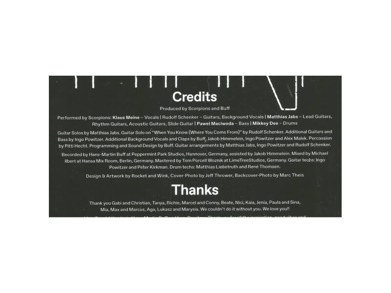 B11 When You Know (Where You Came From) 4:22Lyrics By – Klaus MeineMusic By – Rudolf SchenkerSoloist [Guitar Solo] – Rudolf Schenker