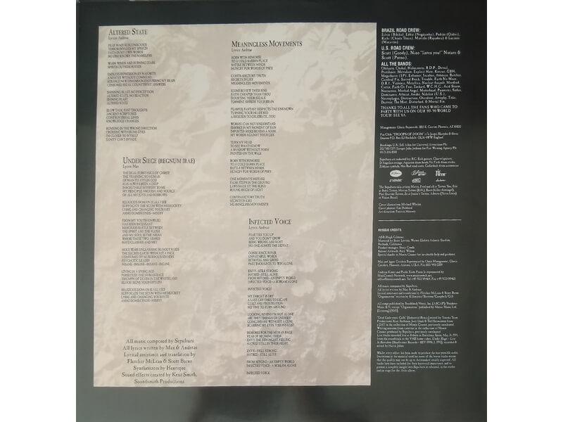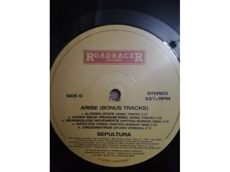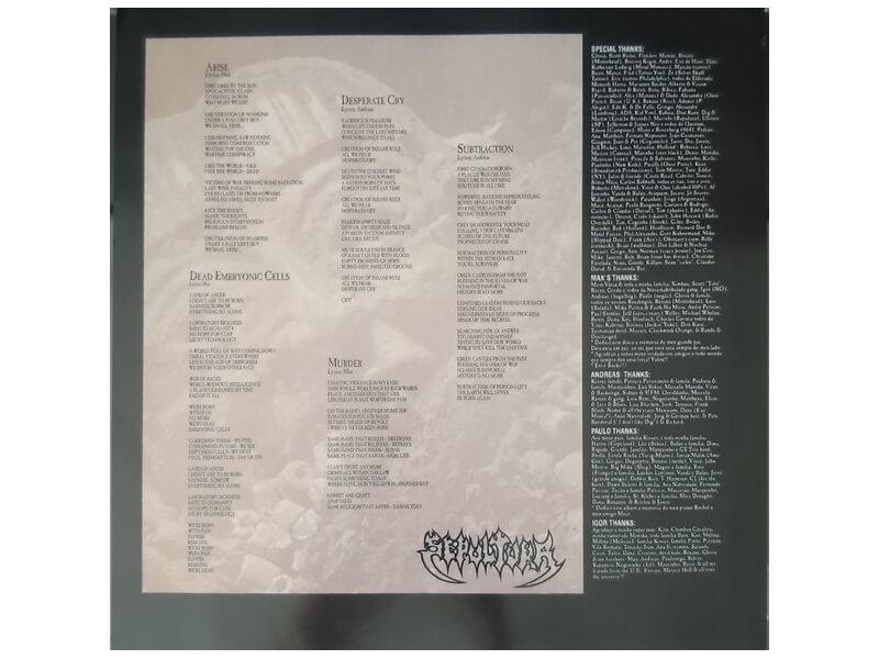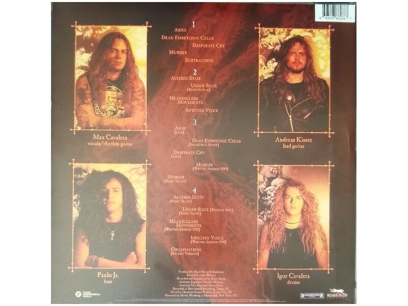 A1 Arise 3:18A2 Dead Embryonic Cells 4:52A3 Desperate Cry 6:40A4 Murder 3:26A5 Subtraction 4:46B1 Altered State 6:43B2 Under Siege (Regnum Irae) 4:52B3 Meaningless Movements 4:40B4 Infected Voice 3:18C1 Arise (Live) 2:55C2 Dead Embryonic Cells (Industrial Remix) 4:33C3 Desparate Cry (Live) 6:00C4 Murder (Writing Session 1989) 2:35C5 Murder (Basic Track) 3:39D1 Altered State (Basic Track) 5:43D2 Under Siege (Regnum Irae) (Basic Track) 4:50D3 Meaningless Movements (Writing Session 1990) 4:46D4 Infected Voice (Writing Session 1990) 2:32D5 Orgasmatron (Studio Version) 4:14